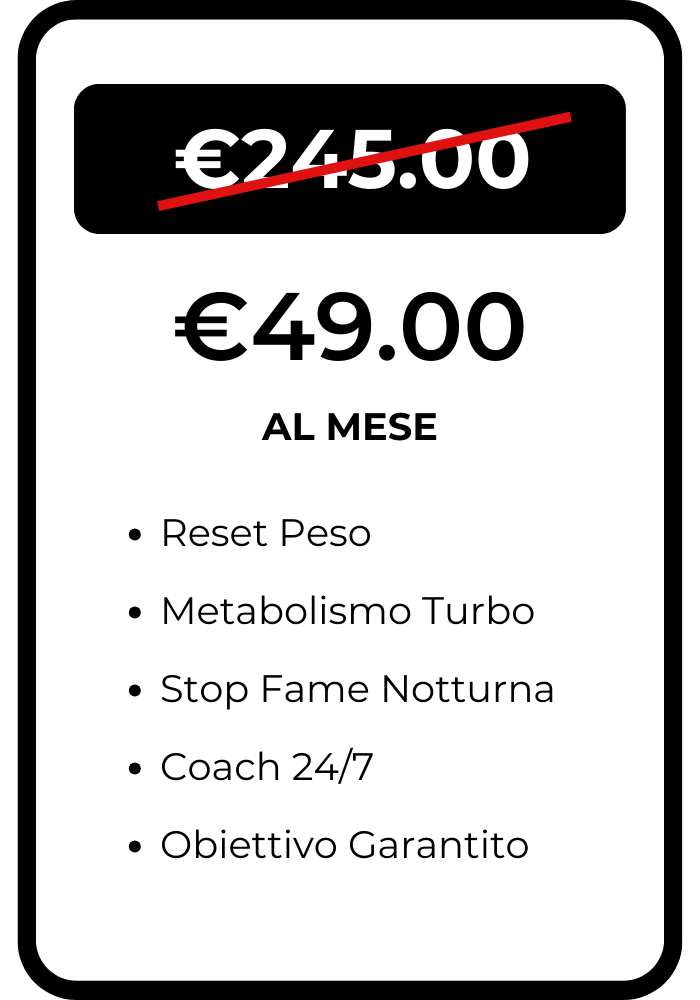 Costruiamo per te pasti e azioni che riattivano il metabolismo, così il corpo torna a bruciare calorie automaticamente,senza contare o calcolare da sola.